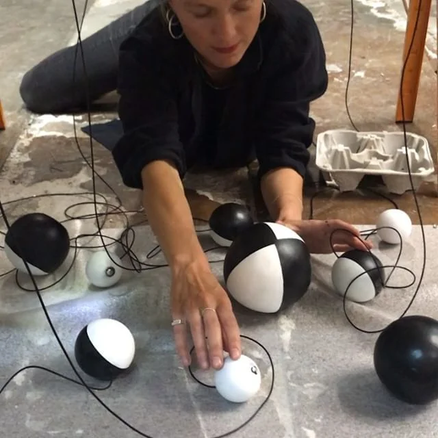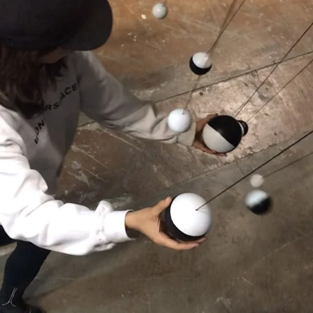 Building our new installation ⚪️⚫️⚪️⚫️⚪️ “Harmony of Spheres” in Phoenix. #fooskou #louisefoo #marthaskou #art #design #technology #interactiveart #visualart #danishdesign #contemporaryart #artistlife  #sound #music #sounddesign #soundart